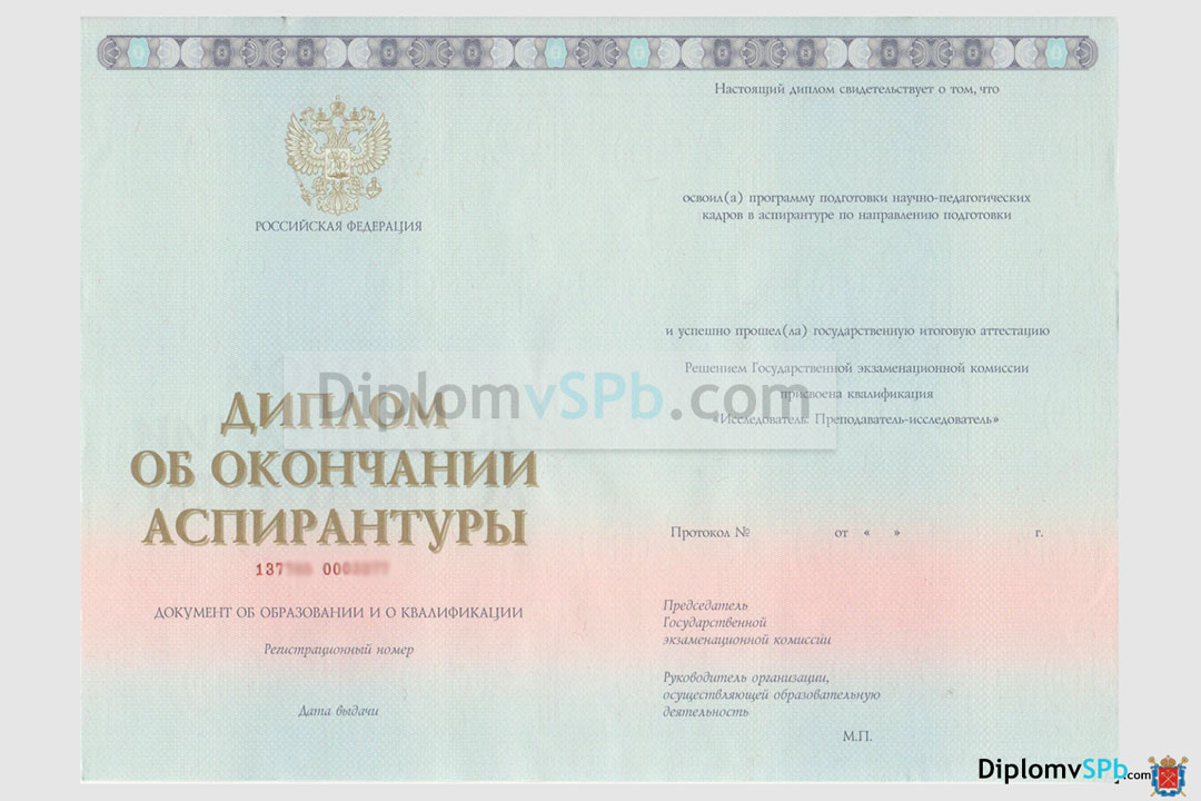 На нашем сайте Вы можете купить диплом об окончании аспирантуры — с 2013 года являющегося третьим уровнем высшего образования — подготовкой кадров высшей квалификации. Диплом изготавливается на настоящем бланке государственного образца (Гознак), заполняется по всем требованиям, заверяется мокрой печатью и подписями. Доставка по СПб курьером уже на следующий день. Оплата при получении после проверки документа. Делаем качественно, соблюдаем конфиденциальность.